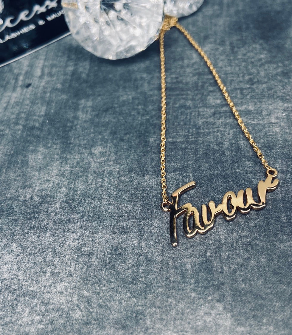 Here’s the classic name pendant necklace. The ideal style for anyone who loves sleek, sophisticated clothing and jewelry. This custom necklace has room for any word or name containing up to ten characters.