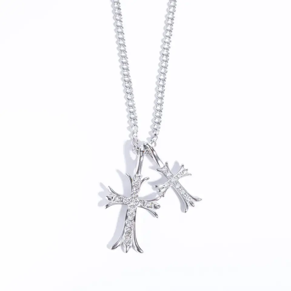 The Double Cross Me Necklace flips between a clean metal cross on one side and a diamond-detailed cross on the other, giving you a reversible design you can switch up anytime.
