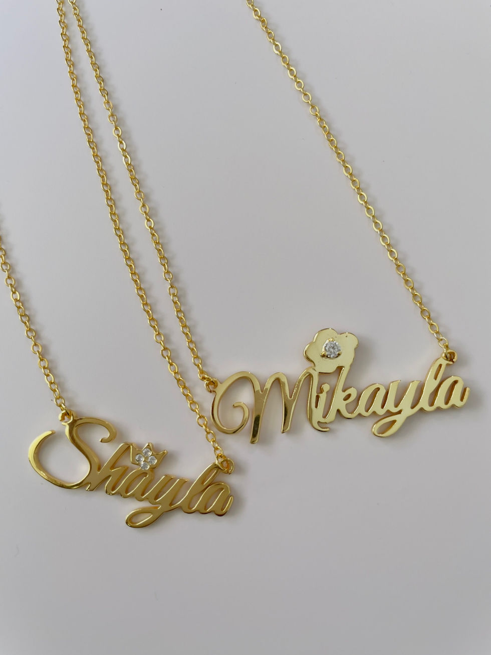 Turn your name into a crown (literally) with the Valley Diamond Name Necklace. Choose between a crown with stones or a flower with stones—both designed to add that extra touch of sparkle to your name. It's all about owning your royalty, in the most understated, yet eye-catching, way. Your name, but make it extra.